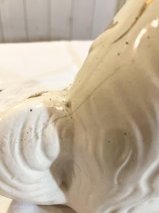全体的に状態は良いと思いますが、残念ながら背中から尻尾にかけてうっすら亀裂が入っています。写真9枚目を見て下さい。