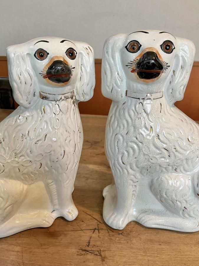 左の子のガラス目の片方にヒビが入っています。ボディには貫入や焼きムラがあります。