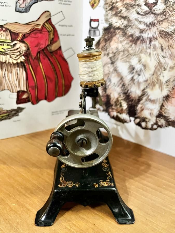 ハンドルはスムーズに回すことができ、針や糸も付いています。縫えるかは動作確認はしておりませんので、ディスプレイとしてご利用ください。