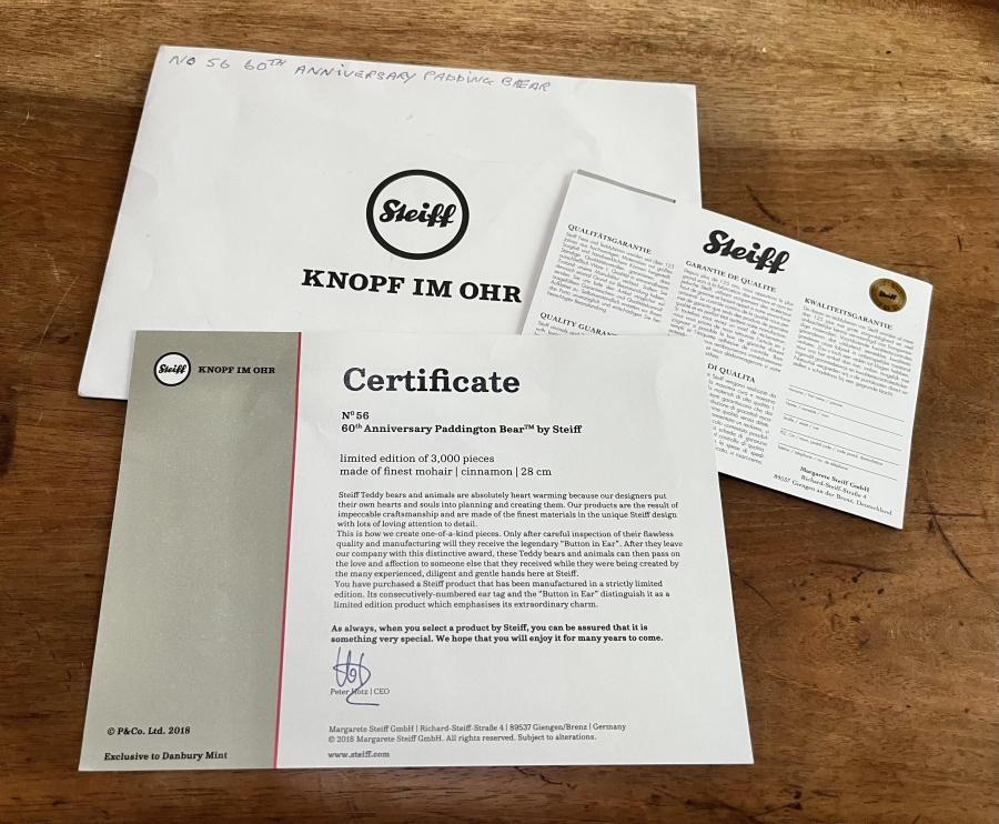 1958年に「くまのパディントン」の絵本が誕生しました。2018年で60年を迎えシュタイフは記念のベアを作りました。