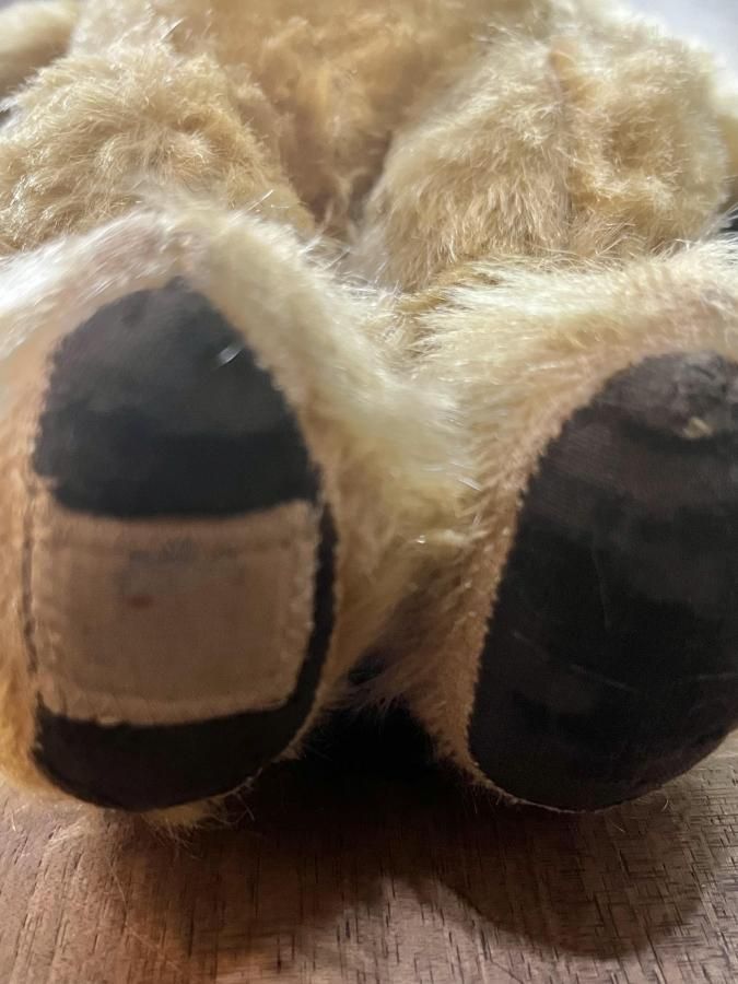 薄くなった布タグが2ヶ所、ボディ側面の布タグ、足パッドに王室御用達の布タグがあります。